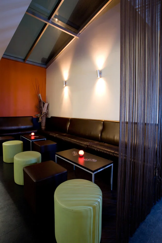 The mezzanine area is located on level one and is a semi-private area within the Hotel. This area is furnished with ottomans and banquet lounges and is adjacent to the bar.